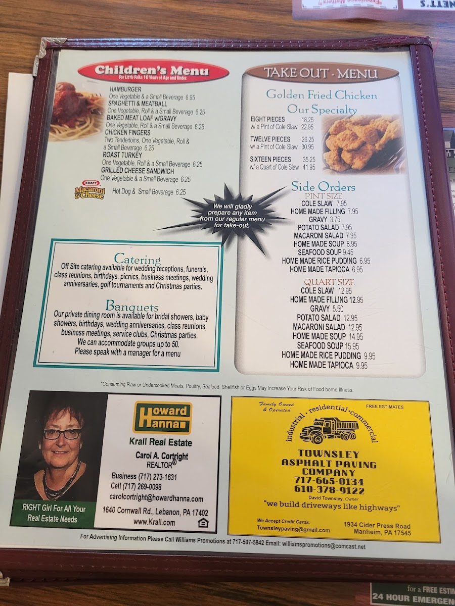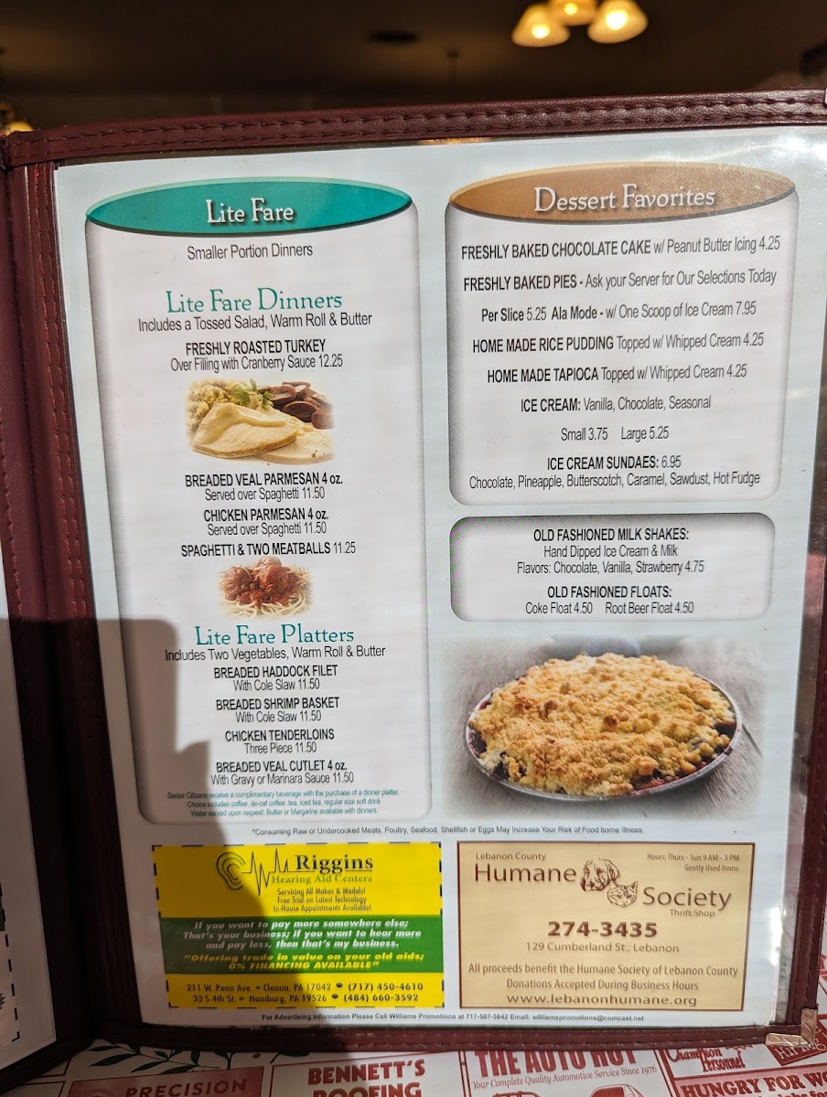 Typical mornings here might include favorites like eggs Benedict with home-fried potatoes or a farmer’s omelette, perfect for those who appreciate a satisfying start to the day. Lunch and dinner choices offer a mix of comforting options such as country fried steak, a seafood platter, or a breaded shrimp basket, ideal for relaxed meals with family or friends. Simple sides like mini hash browns and classic comfort desserts like cherry pie or chocolate sheet cake provide familiar flavors that complement the rich, home-style fare.