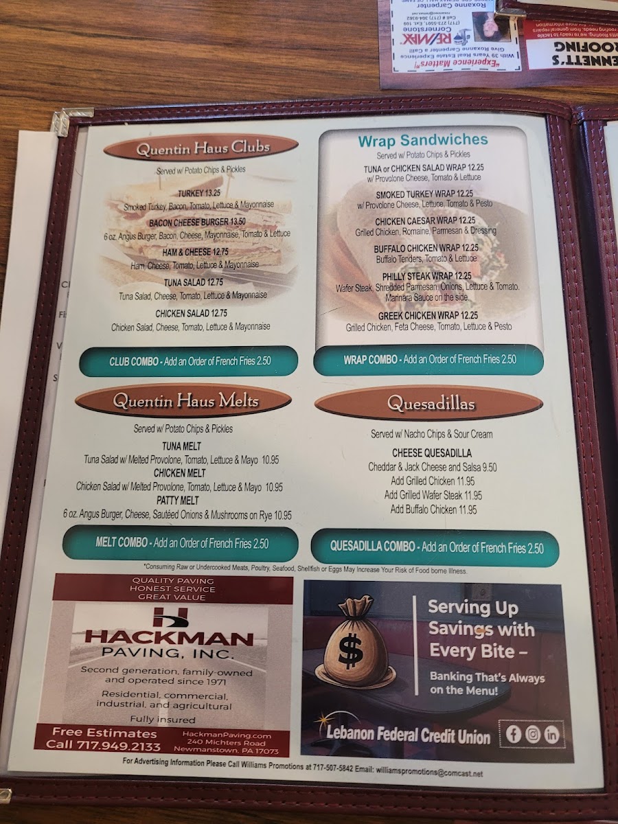 Quentin Haus Menu
